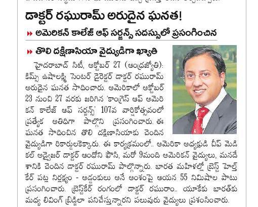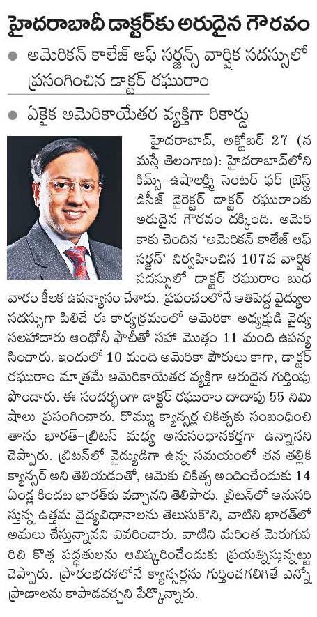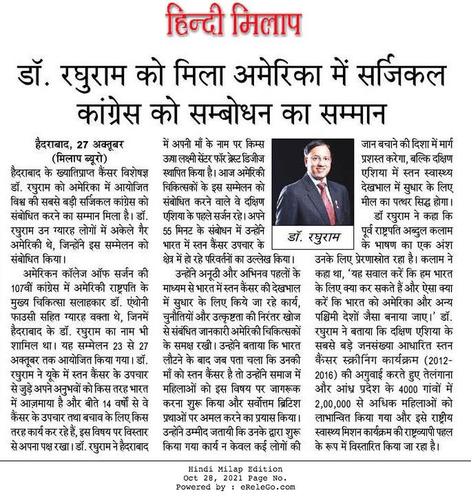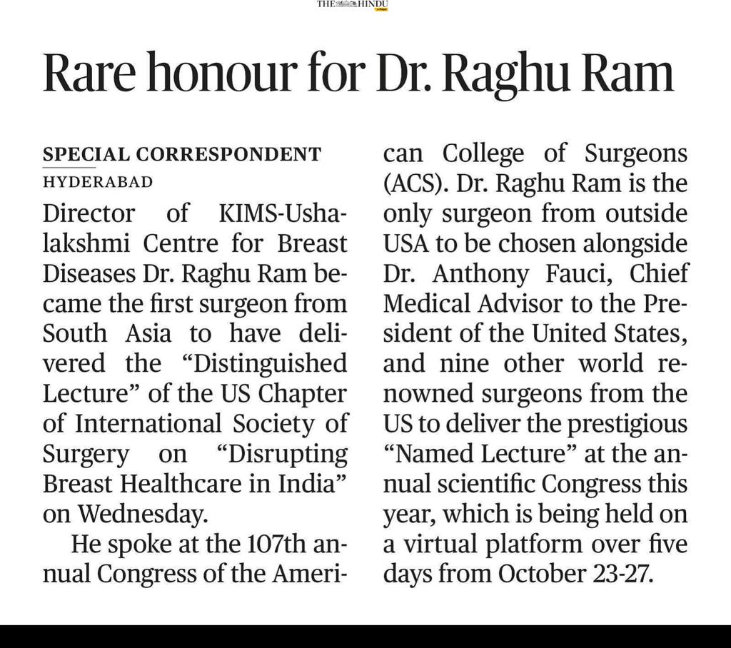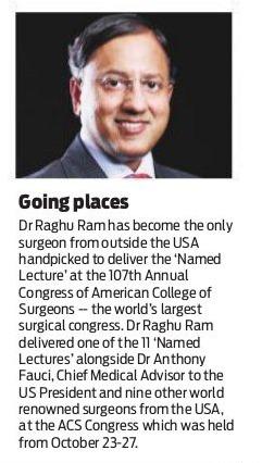 Dr Raghu Ram was the Only Surgeon from outside USA handpicked to deliver the “Distinguished Lecture” @ the 107th annual Congress of the Annual Congress of the American College of Surgeons (#ACCCC2021) – World’s largest Surgical Congress organised by the world’s largest Surgical Organisation.