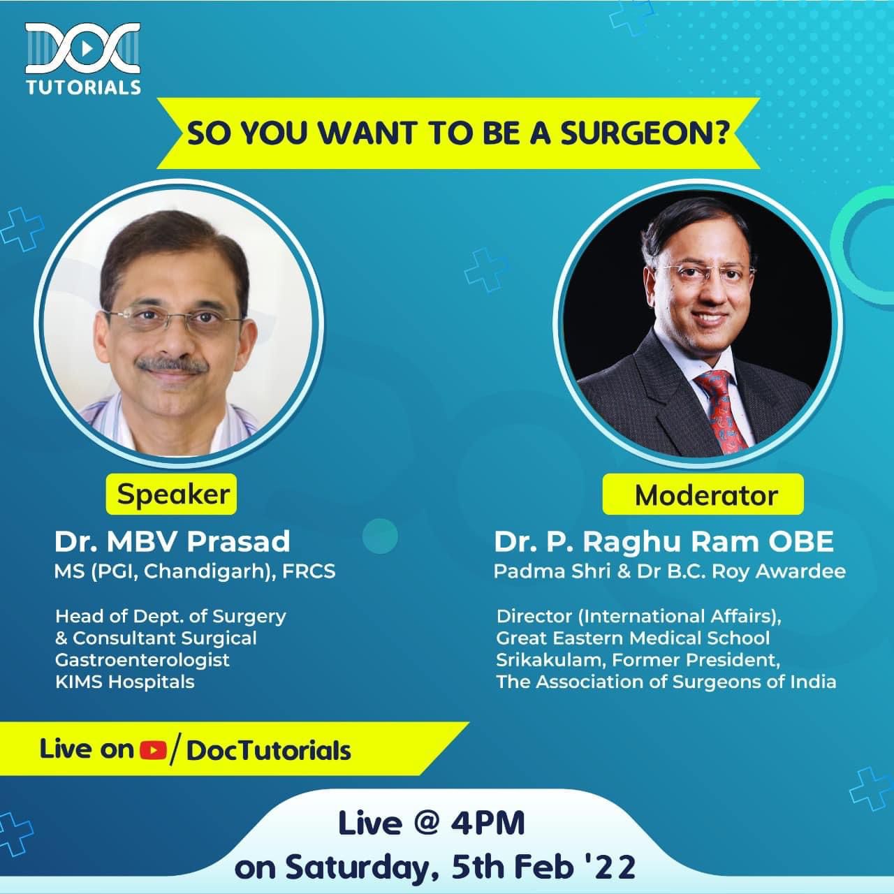 Moderator – “So you want to be a Surgeon” Dr Raghu Ram was invited to moderate this online Programme conducted by Doctutorials, which was accessed by close to 1000 surgical trainees from all over India.